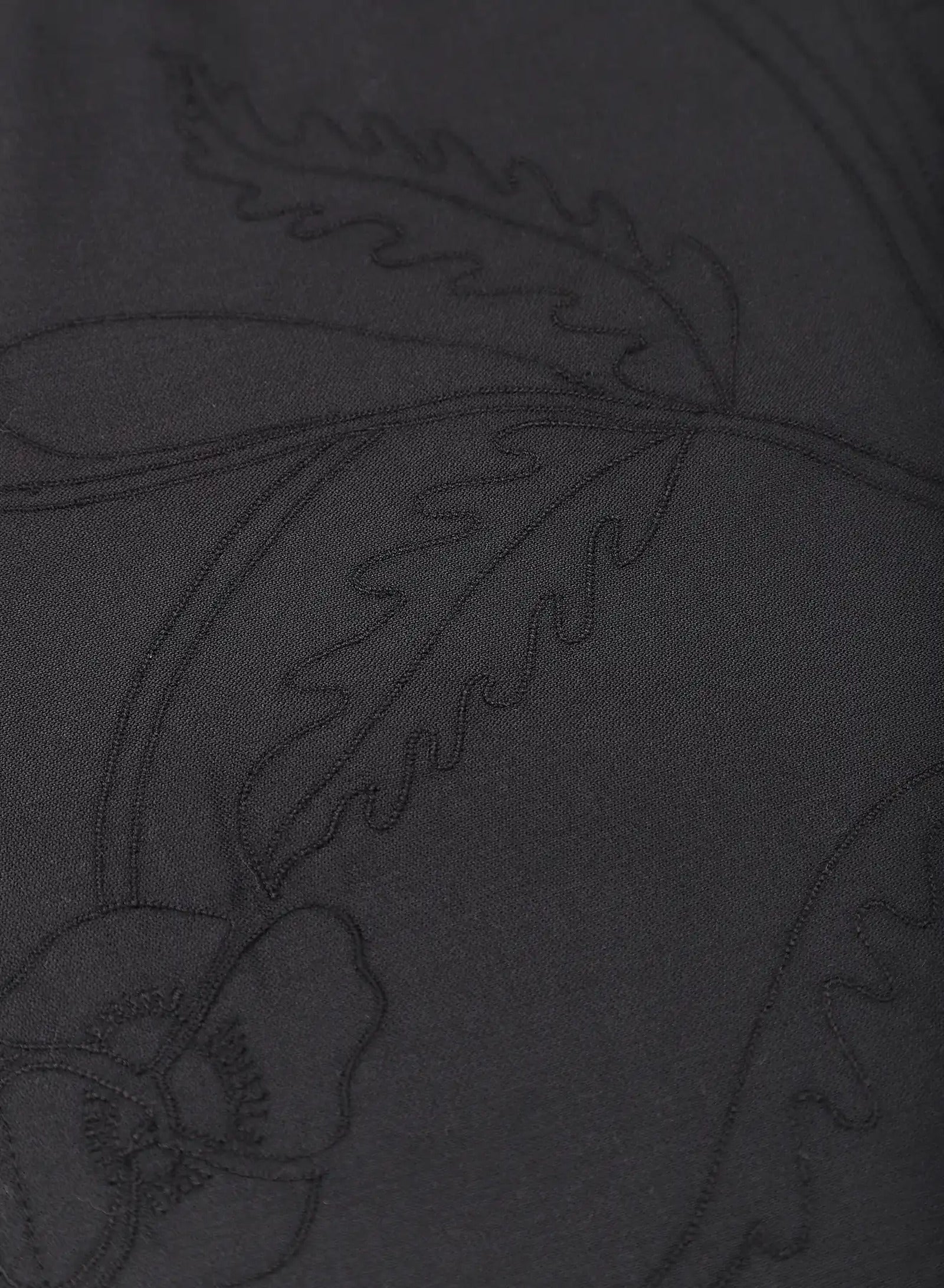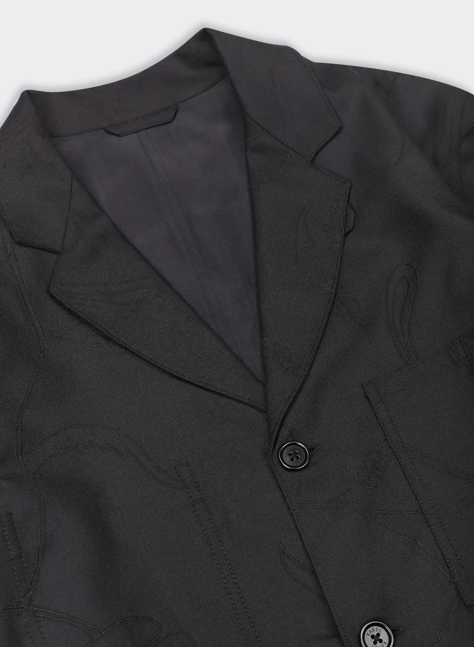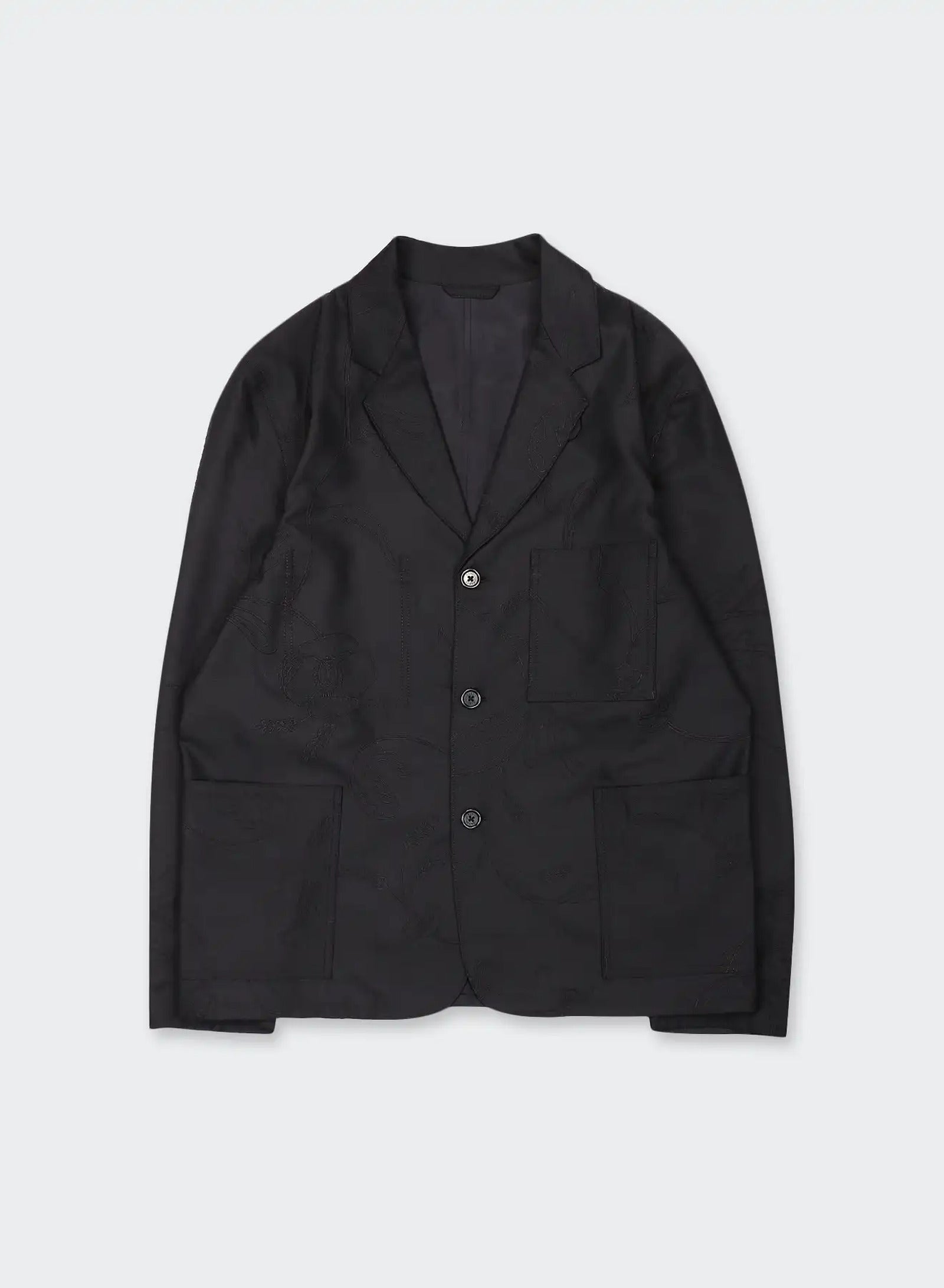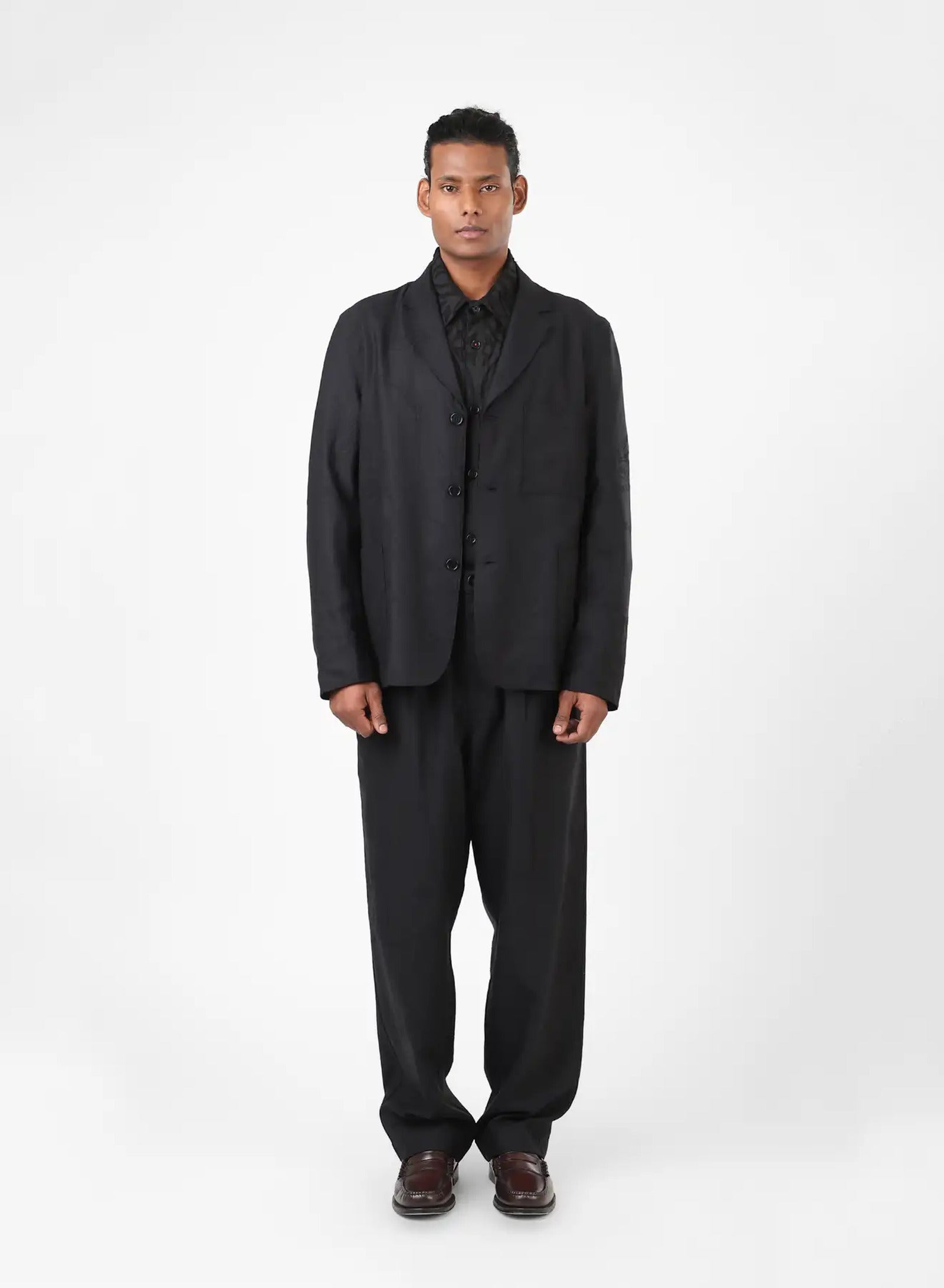 Woven from Super 120s wool at Huddersfield—one of India’s finest suiting mills—this cloth holds its shape with ease and refinement. We've known its grain intimately: how it falls, how it holds, how it yields under a thread. Light on the body, the fabric carries a fluid drape that allows ease of movement while holding its line with natural crease resistance. Our relationship with this fabric makes it a natural canvas for embroidery—each motif guided by hand on a sewing machine by seasoned artisan Hasmat Ali, practicing his craft from a space tucked just behind our studio.
