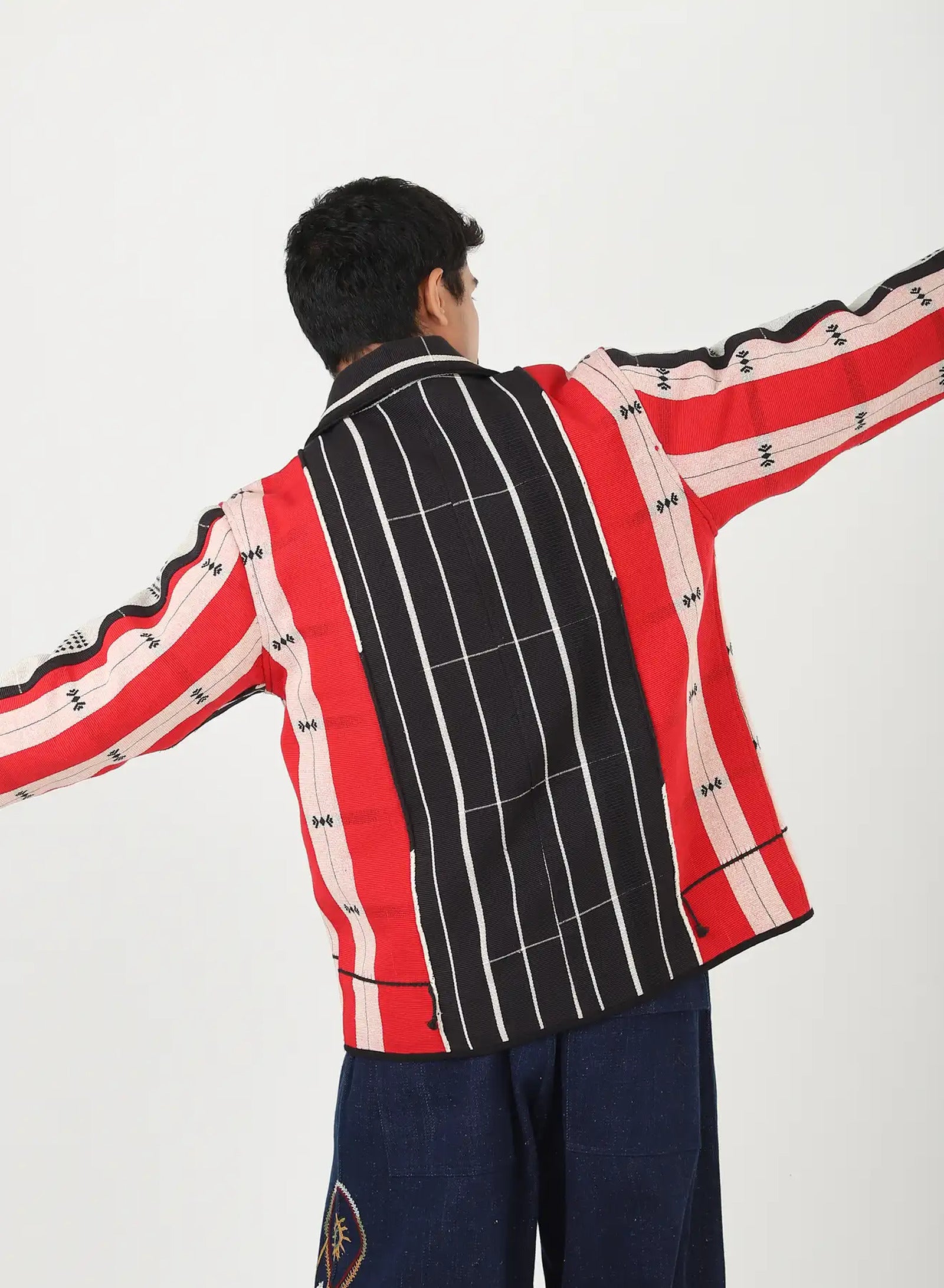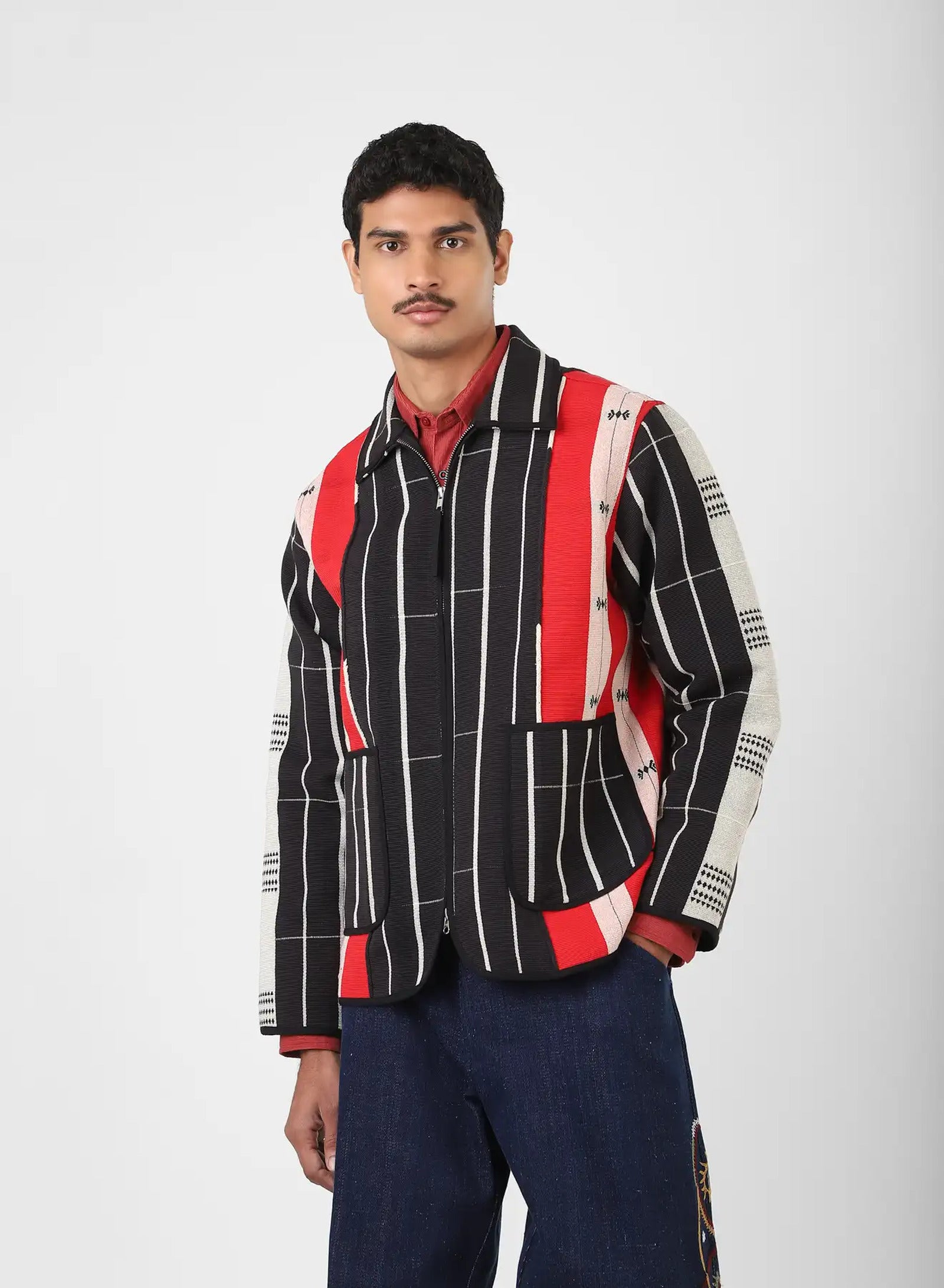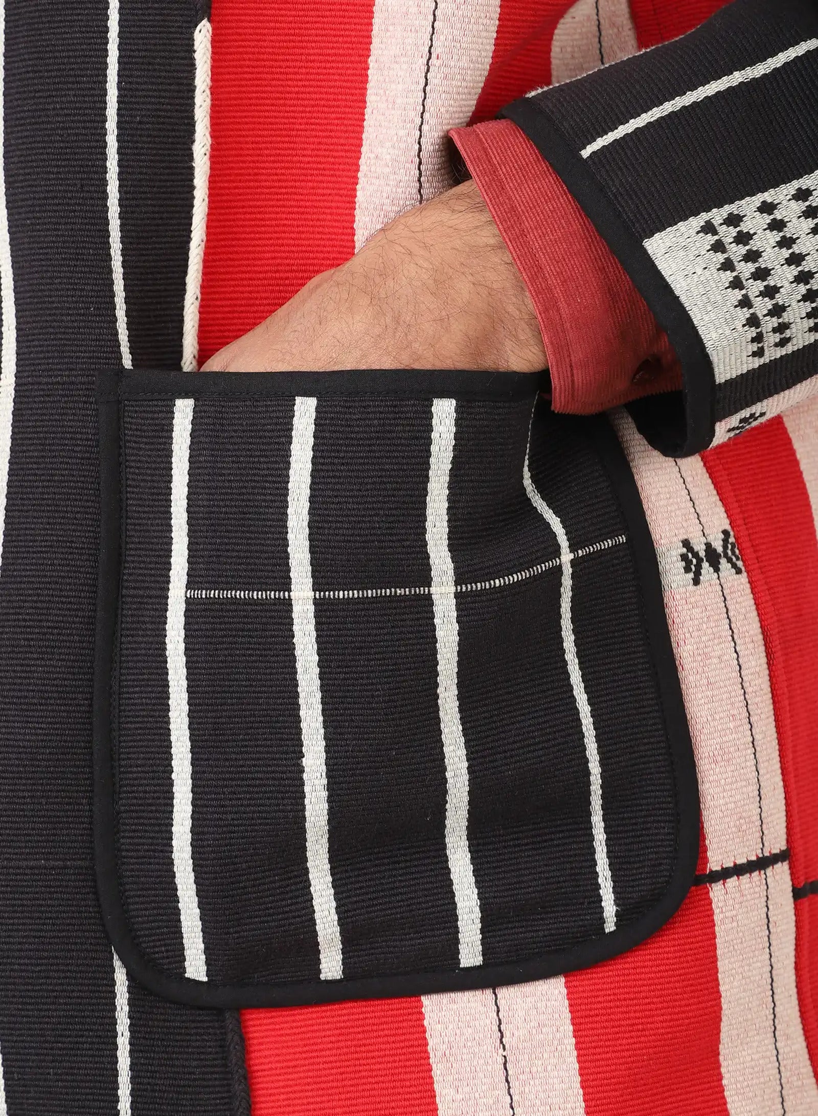 In Dimapur, Nagaland, we work with Viko Ethnic, where backstrap weaving continues in the hands of women who have carried its patterns through generations. Each motif reflects tribal identity, held in the rhythm of the loom and the memory of those who weave it. Here, naga fabrics are set into handwoven denim, so two lineages of craft meet in a single cloth.