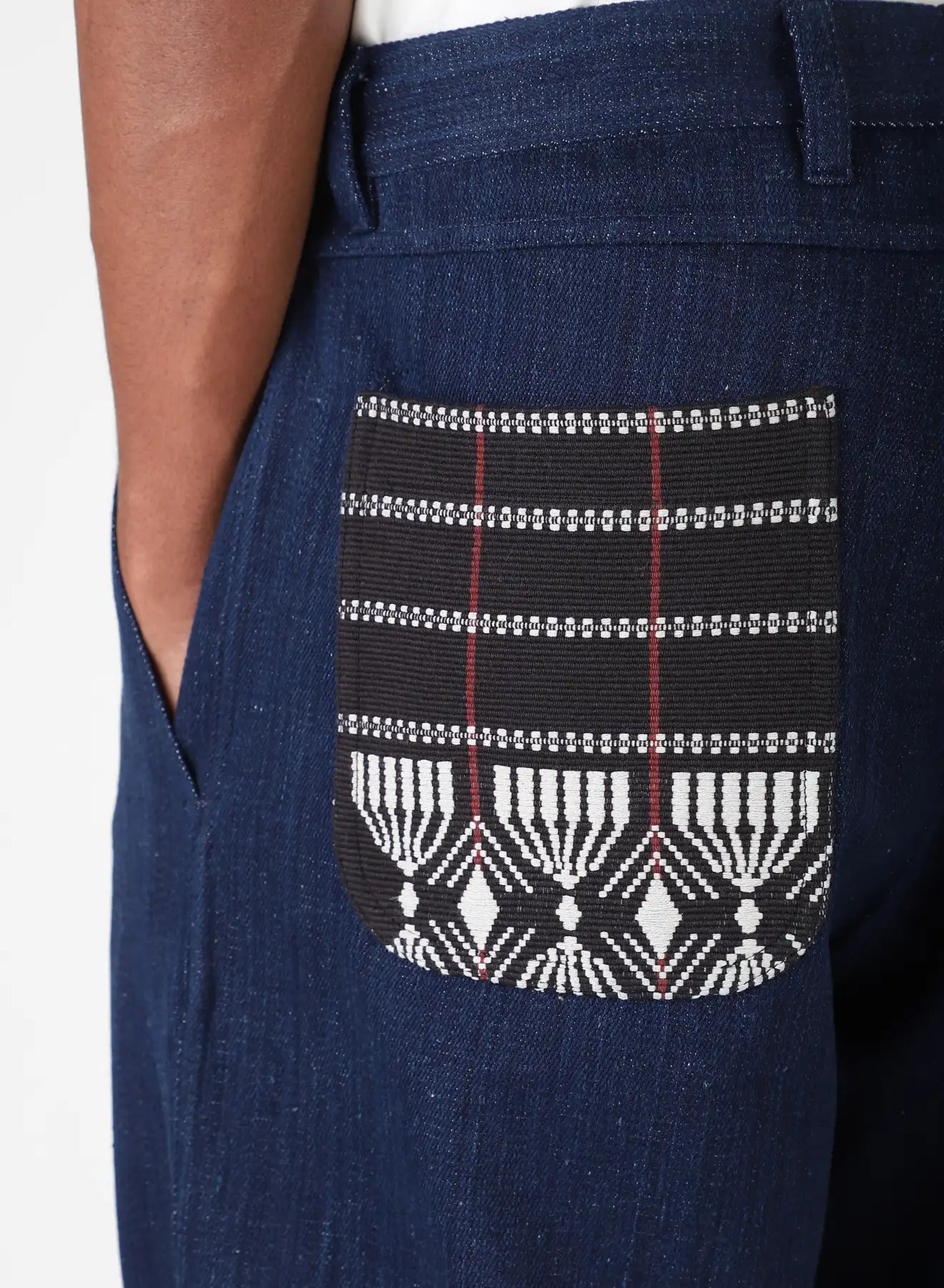 100% NATURAL DYED HANDLOOM DENIM WITH NAGA WEAVE PATCH POCKETS