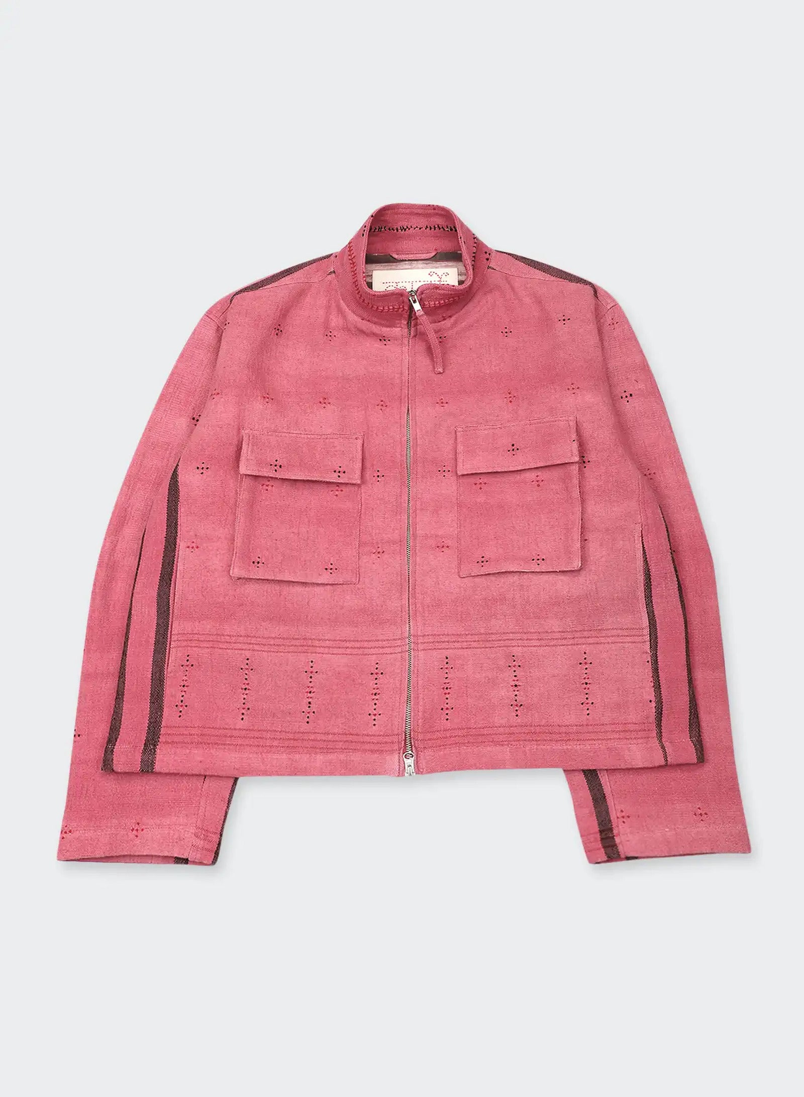 - Note: The garment may exhibit patchy dyeing and marks as a result of the natural dyeing process. The print may naturally fade due to exposure to sunlight and washing. Dry crocking (the transfer of dye onto other fabrics and surfaces when dry) may also occur. Refrain from pairing this clothing item with light colors until any remaining color has been eliminated, as there might be some color transfer.