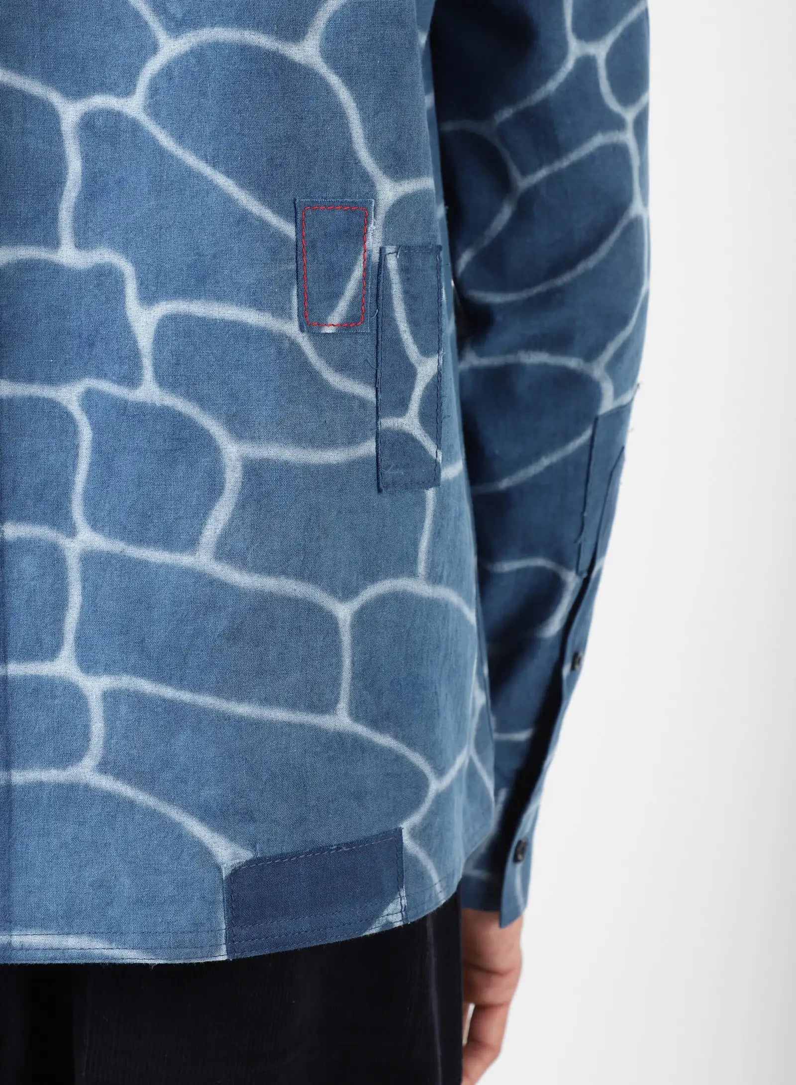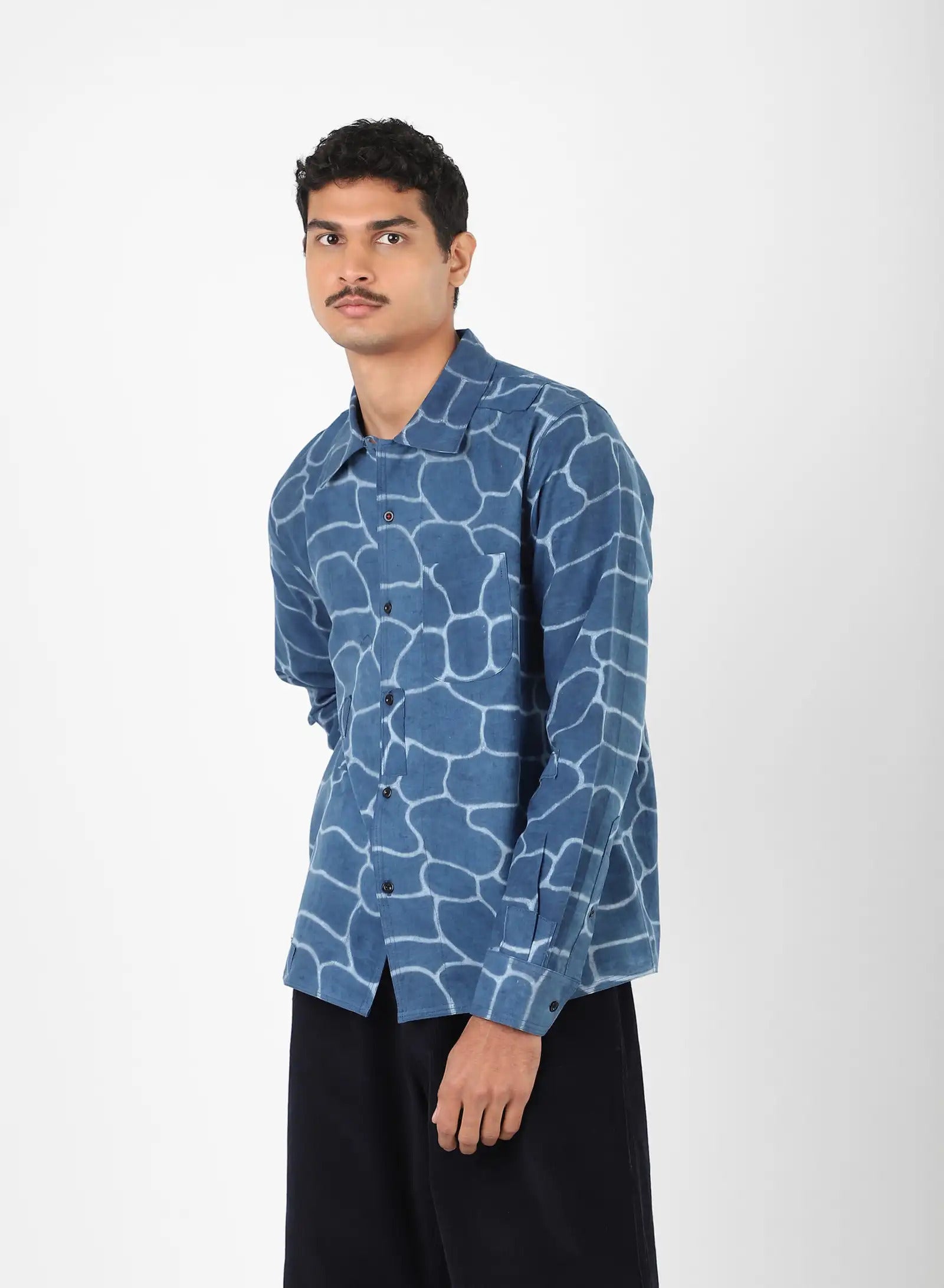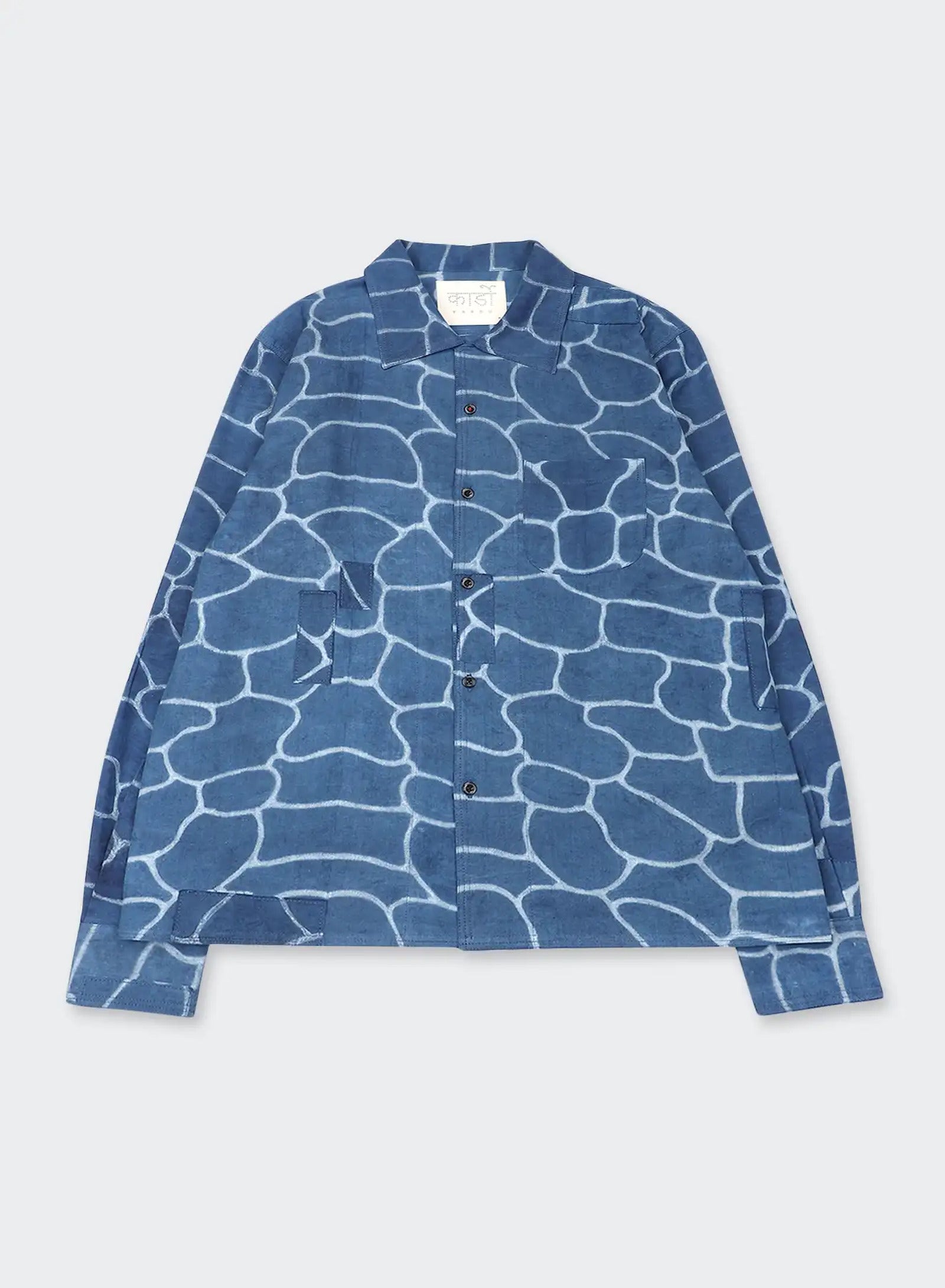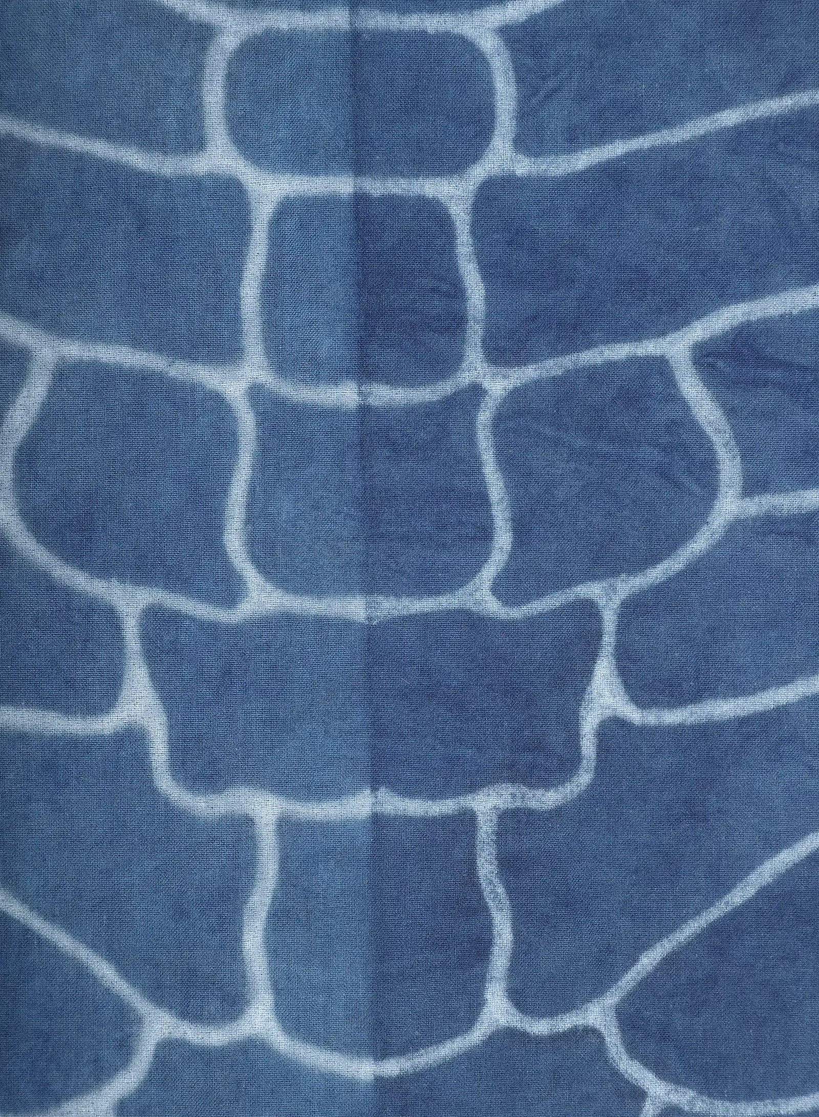 We work with medium-weight khadi cotton, prepared with stitched or bound resist before it meets the dye. At UNNATI, the fabric is coloured in natural indigo or harda extract, each drawn from plants and absorbed slowly into the fibre. Once the bindings are undone, the patterns emerge — shaped by folds, knots, and the tension of the hand that held them. For us, the beauty is in this moment of release: a cloth carrying both the depth of plant-based colour and the individuality of a design made entirely by hand.