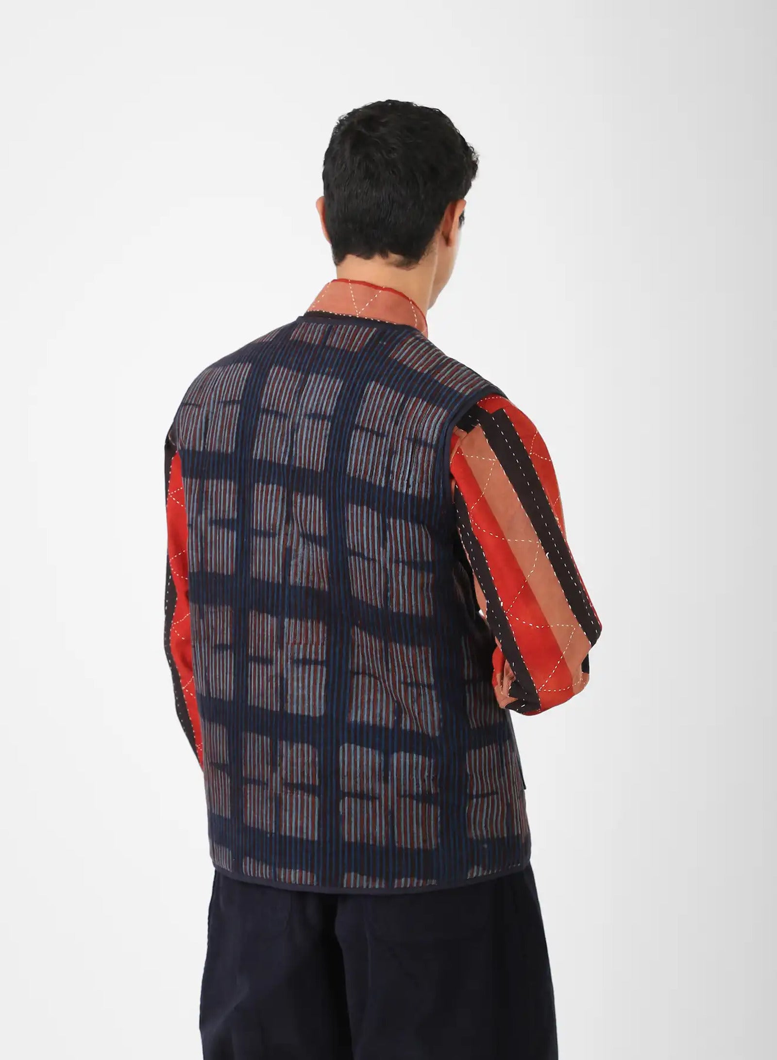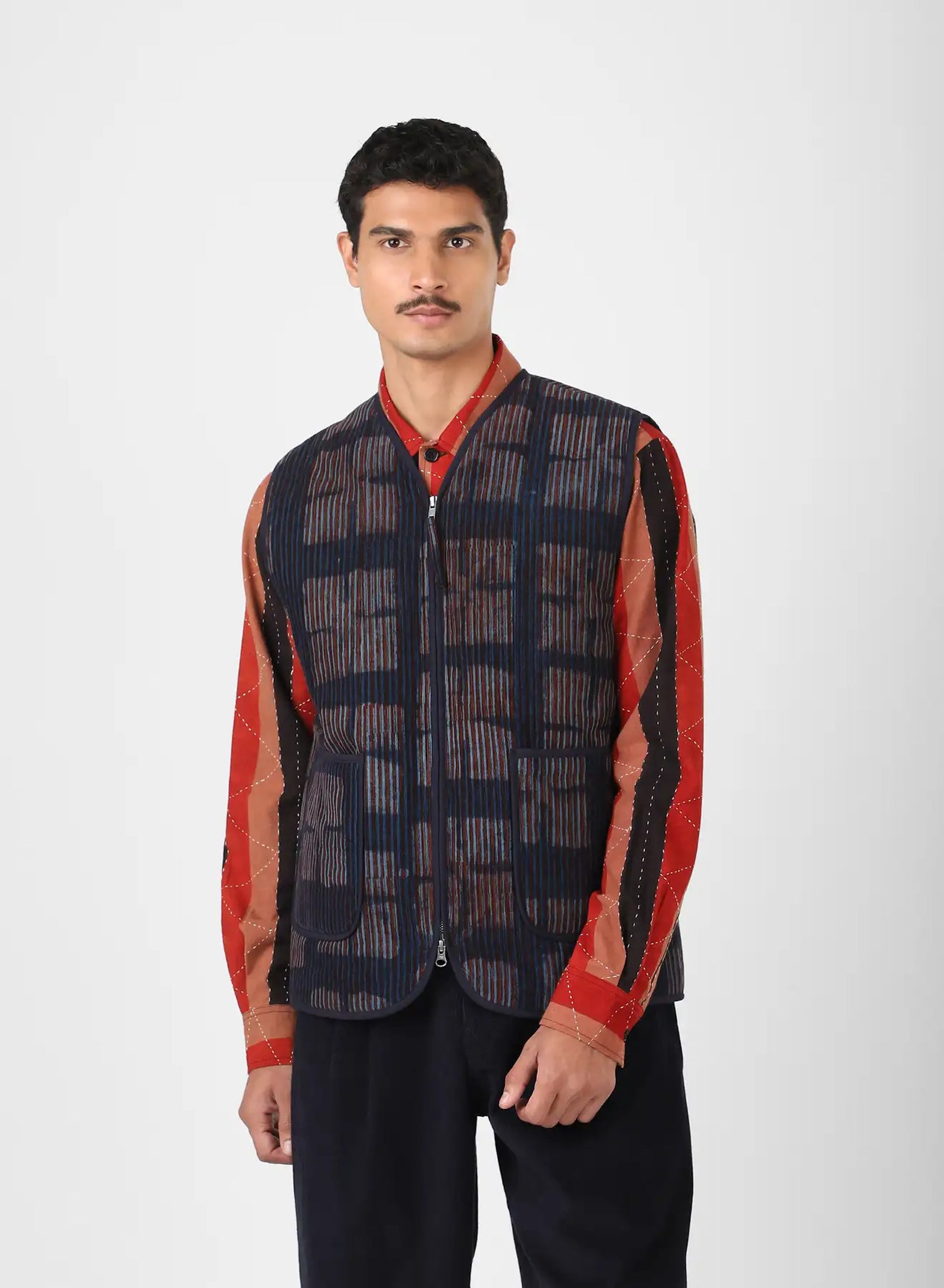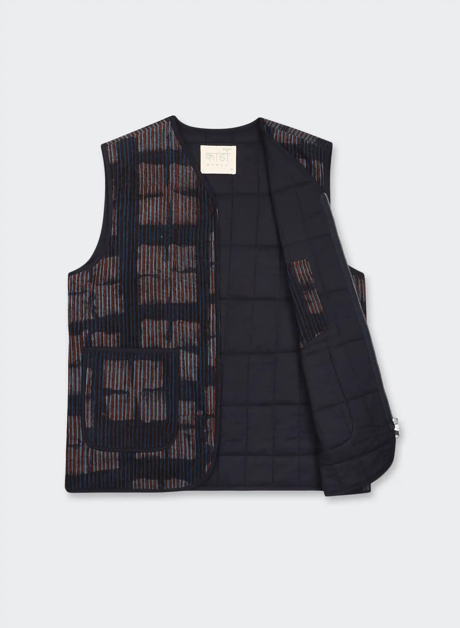 QUILTED TWO WAY ZIP VEST WITH BINDING DETAILS