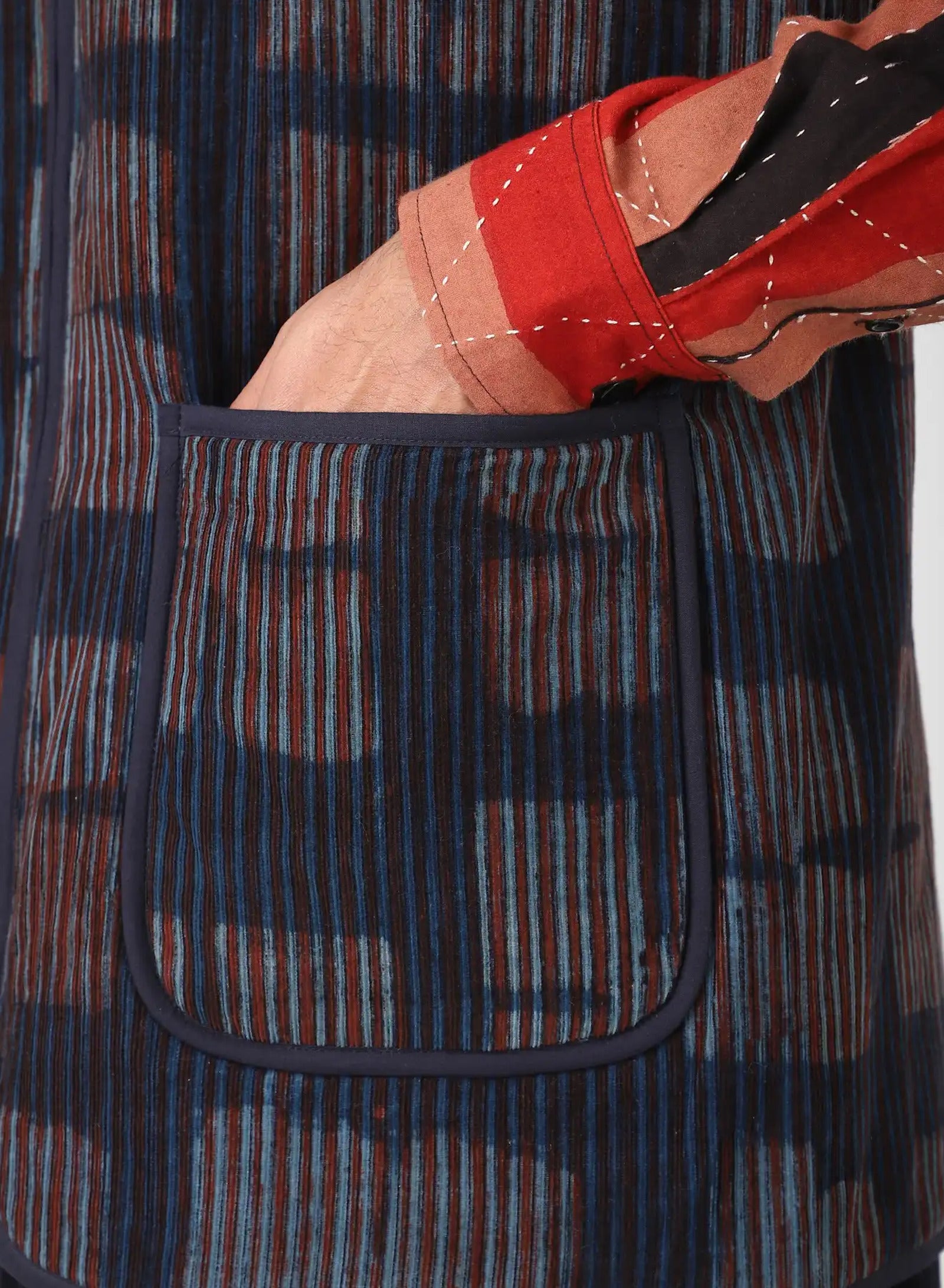 We print these fabrics with hand-carved wooden blocks, each block carrying a fragment of the larger pattern. Every colour is pressed in a separate pass, aligned by eye and hand with practiced precision. We work with master printers in Rajasthan, including Anokhi, and often turn to natural dyes for their depth and warmth. As the cloth is printed, the colours settle into the fibres themselves, so the pattern becomes part of the fabric’s character, resting as naturally as the weave around it.