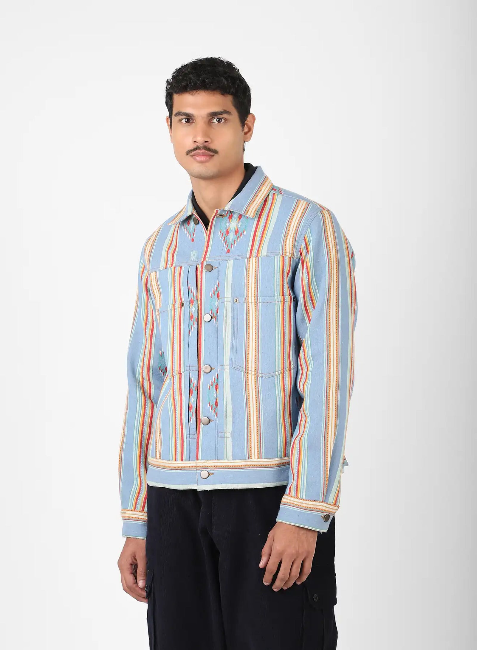 We work with jacquard weaves where patterns are shaped on the loom itself, each one growing into the cloth as it is made. Extra yarns are guided through the warp or weft, forming designs that rise gently from the surface. In hand, these motifs catch the light along their edges, giving the fabric equal depth and shadow. For us, jacquard holds its richness in structure — substantial to touch, and revealing more of itself the longer it is lived with.