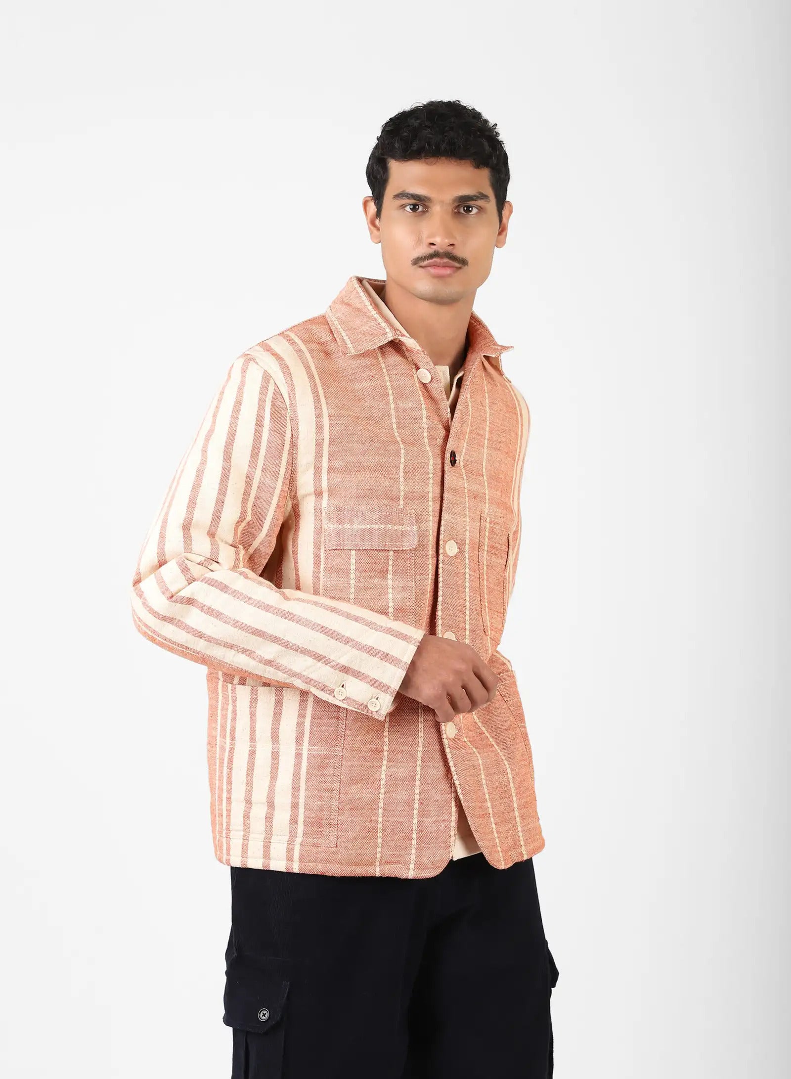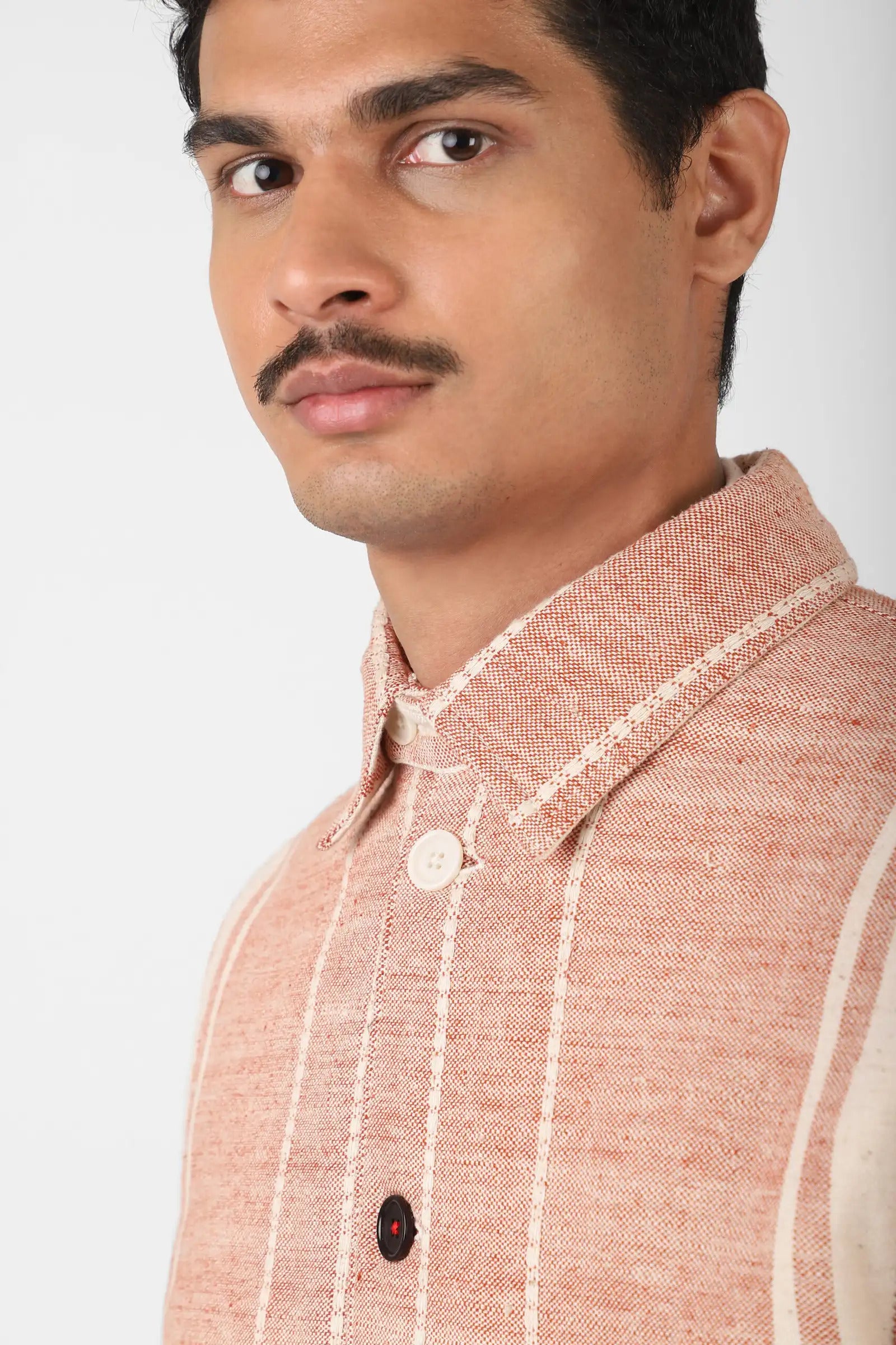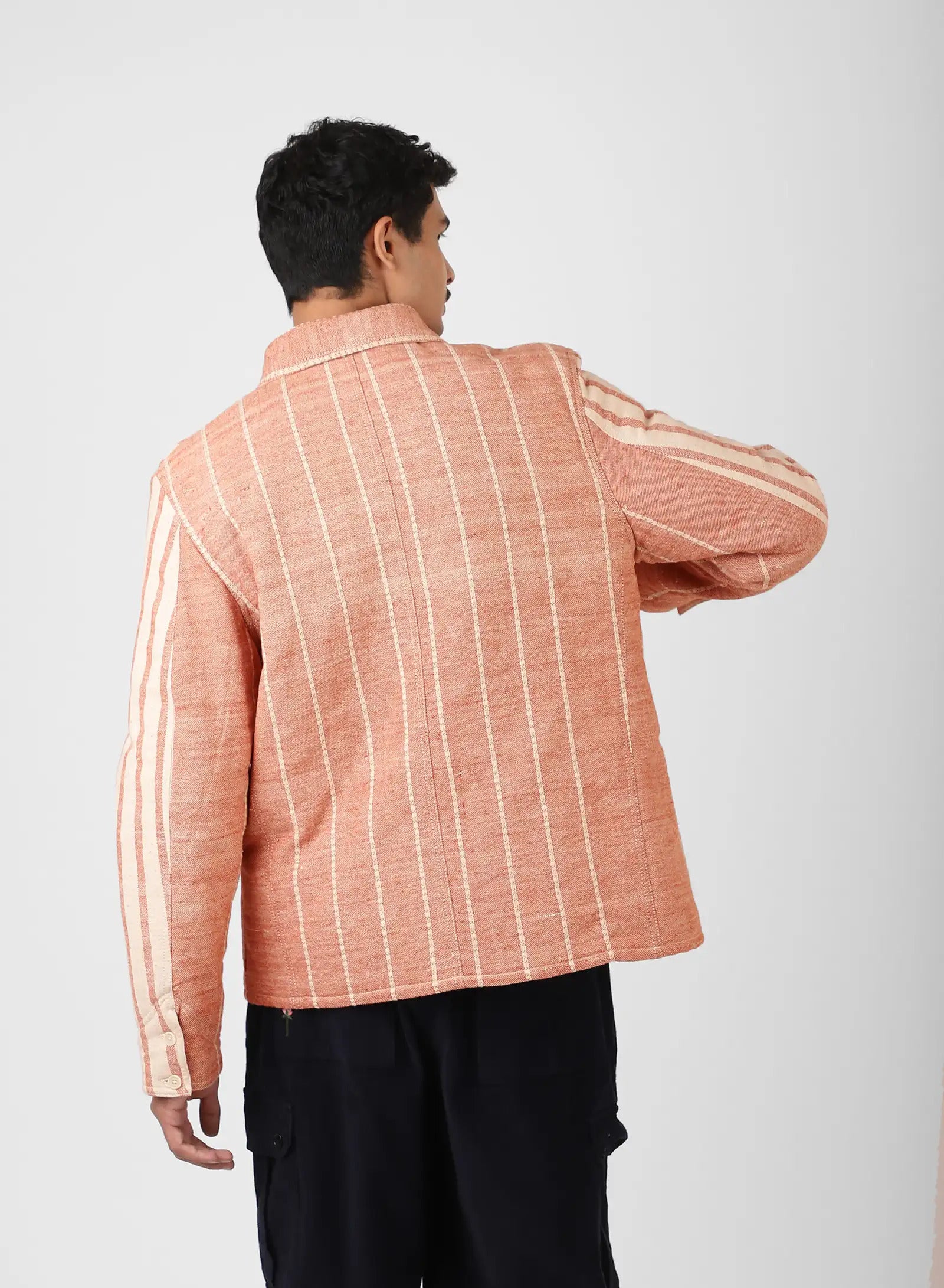 The handloom remains at the centre of our work, where every fabric begins in the hands of a weaver. Each pass of the shuttle carries its touch, leaving small shifts in tension and subtle changes in shade that belong only to handwork. To us, these are the signs of a living process — what makes the cloth feel honest when held, and comforting in the way it is worn over time.