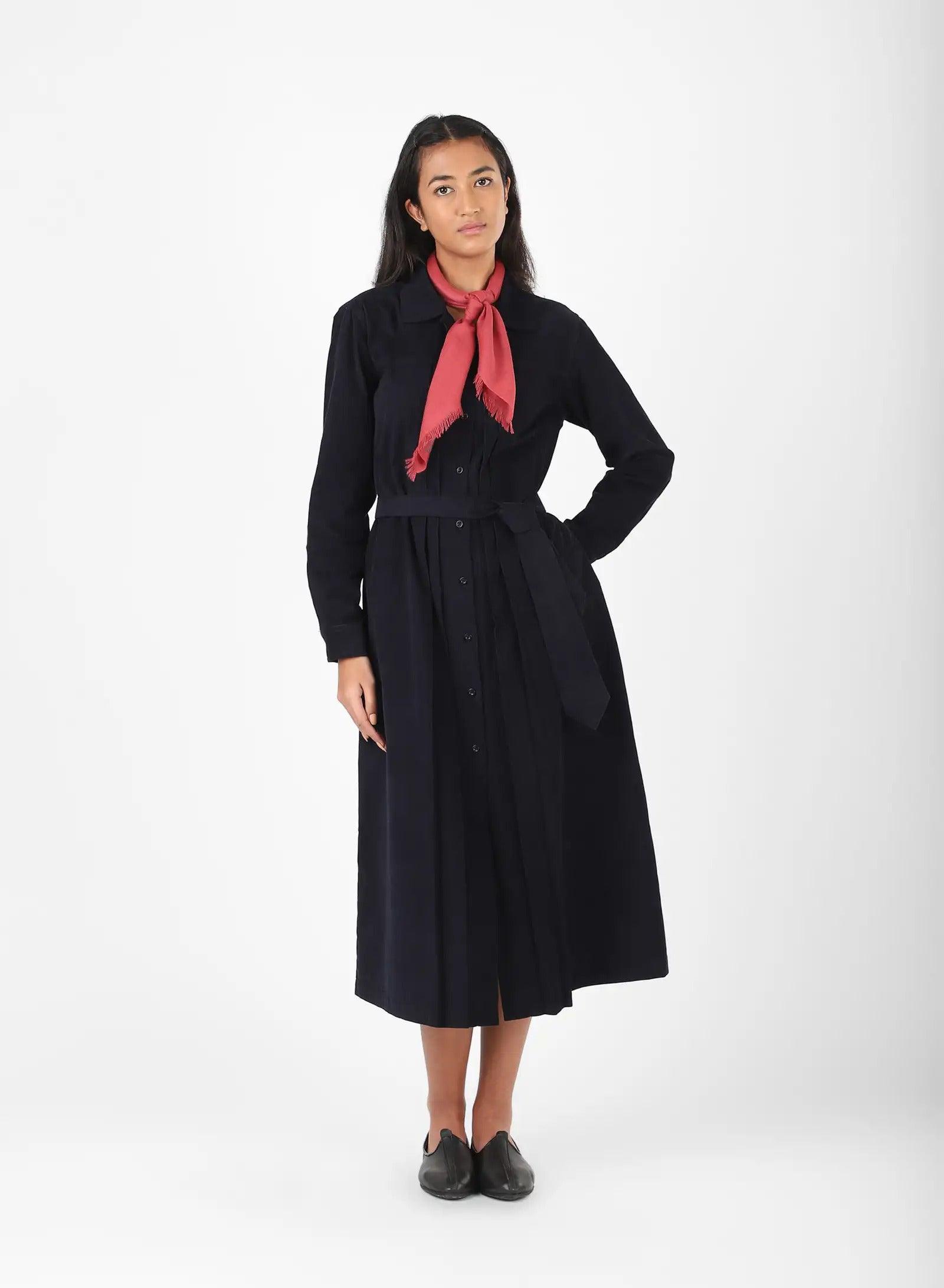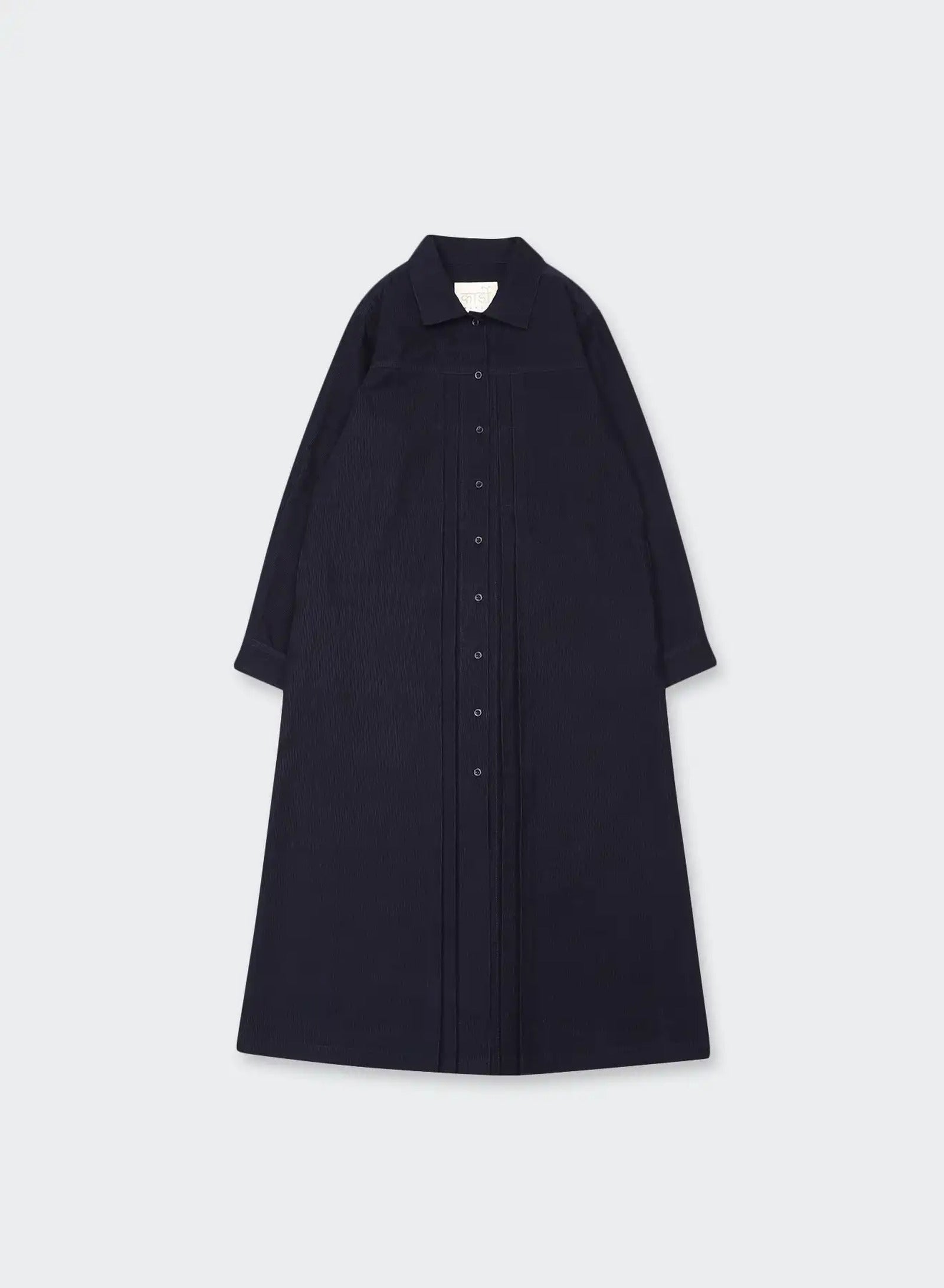 SHIRT DRESS WITH FRONT PLEATS AND SIDE POCKETS