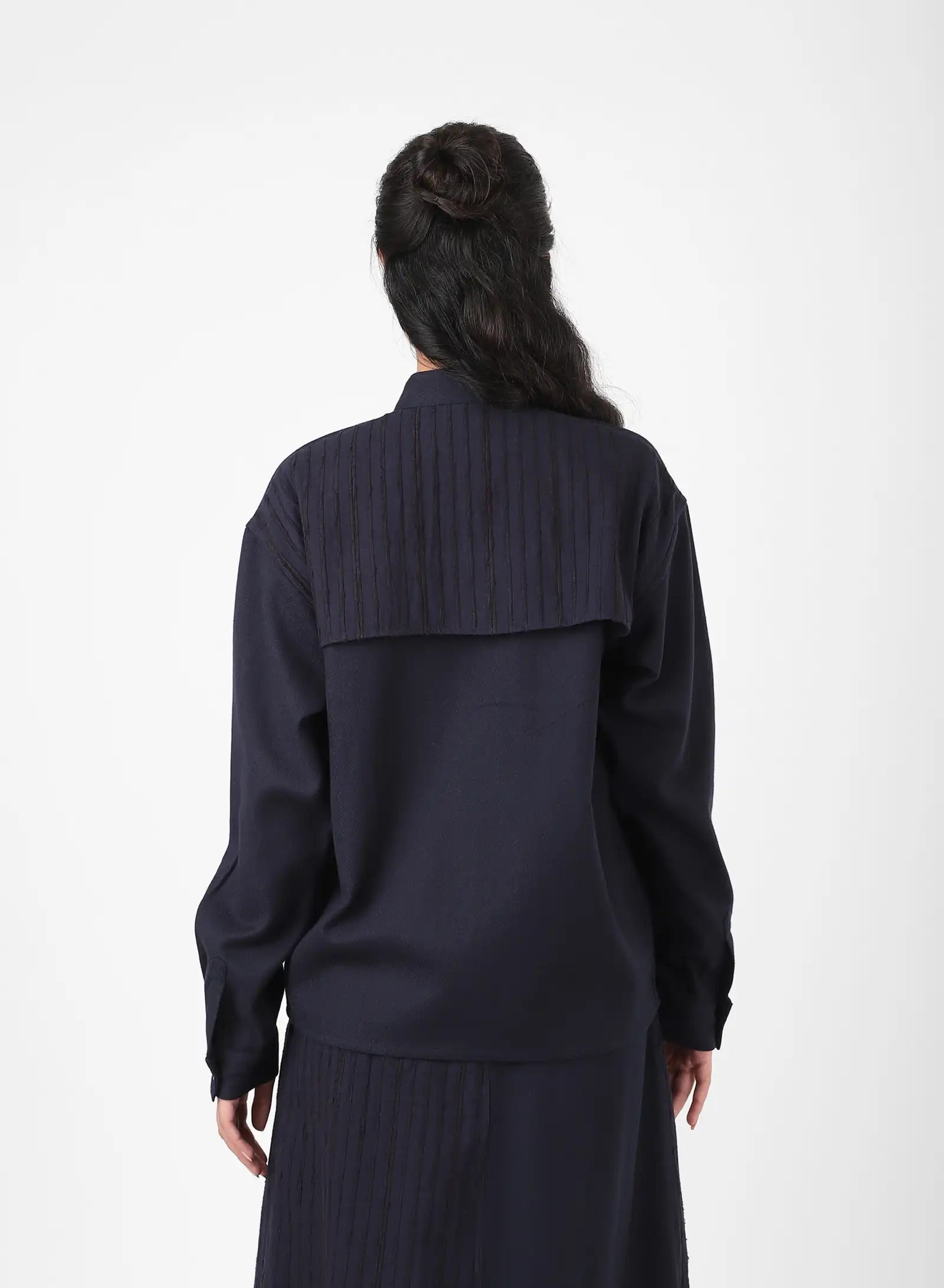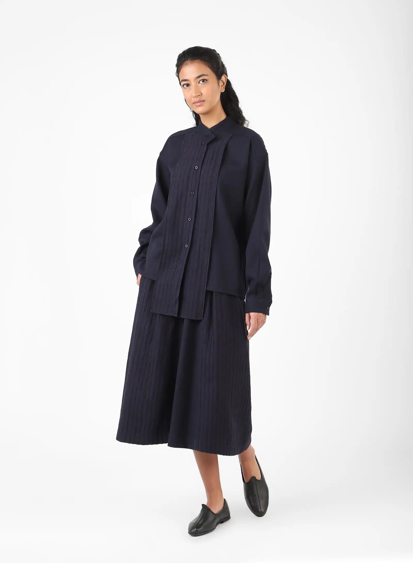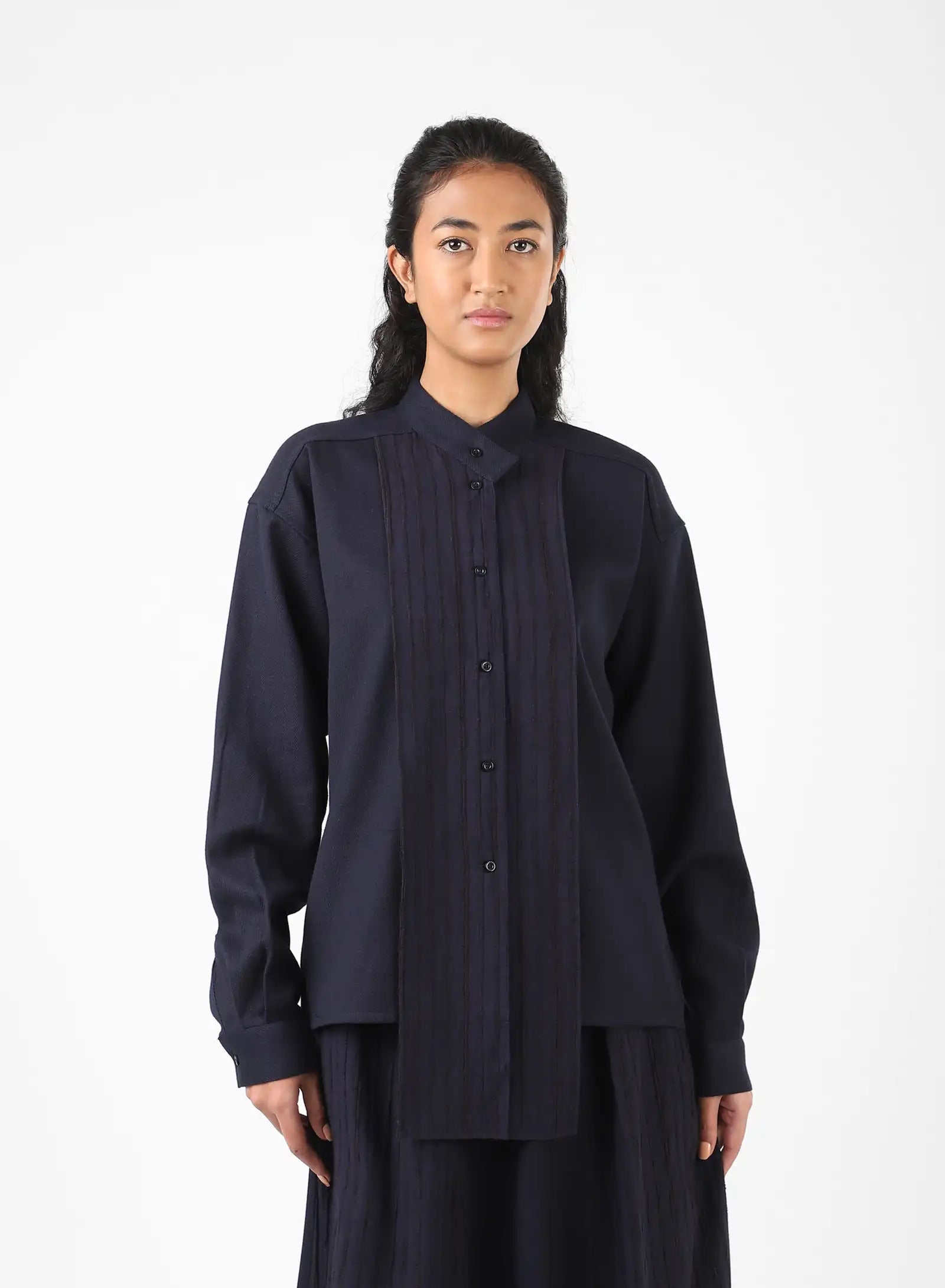 LS SHIRT WITH MANDARIAN COLLAR AND FRONT PANELS