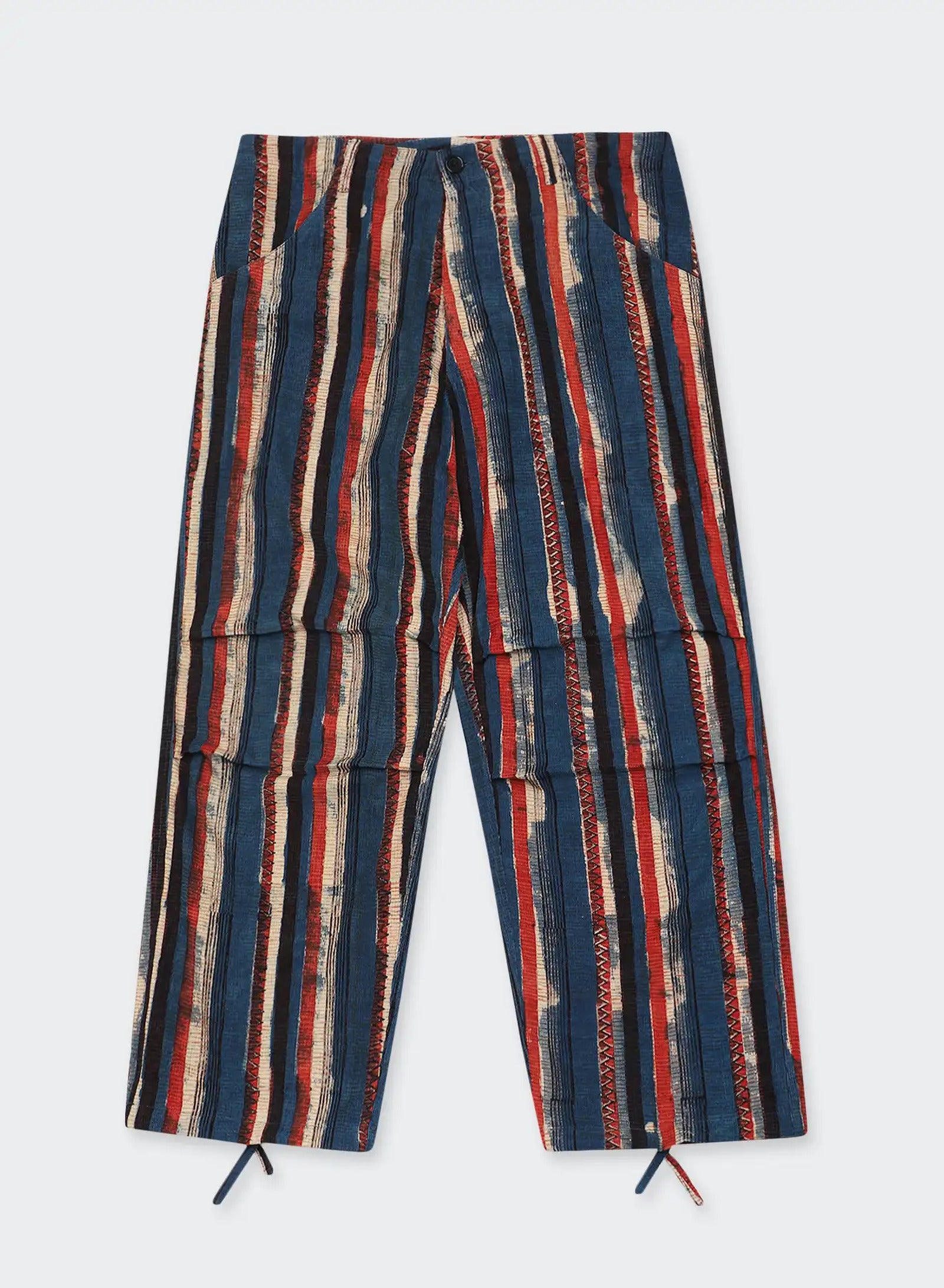 - Note: The garment may exhibit patchy dyeing and marks as a result of the natural dyeing process. The print may naturally fade due to exposure to sunlight and washing. Dry crocking (the transfer of dye onto other fabrics and surfaces when dry) may also occur. Refrain from pairing this clothing item with light colors until any remaining color has been eliminated, as there might be some color transfer.