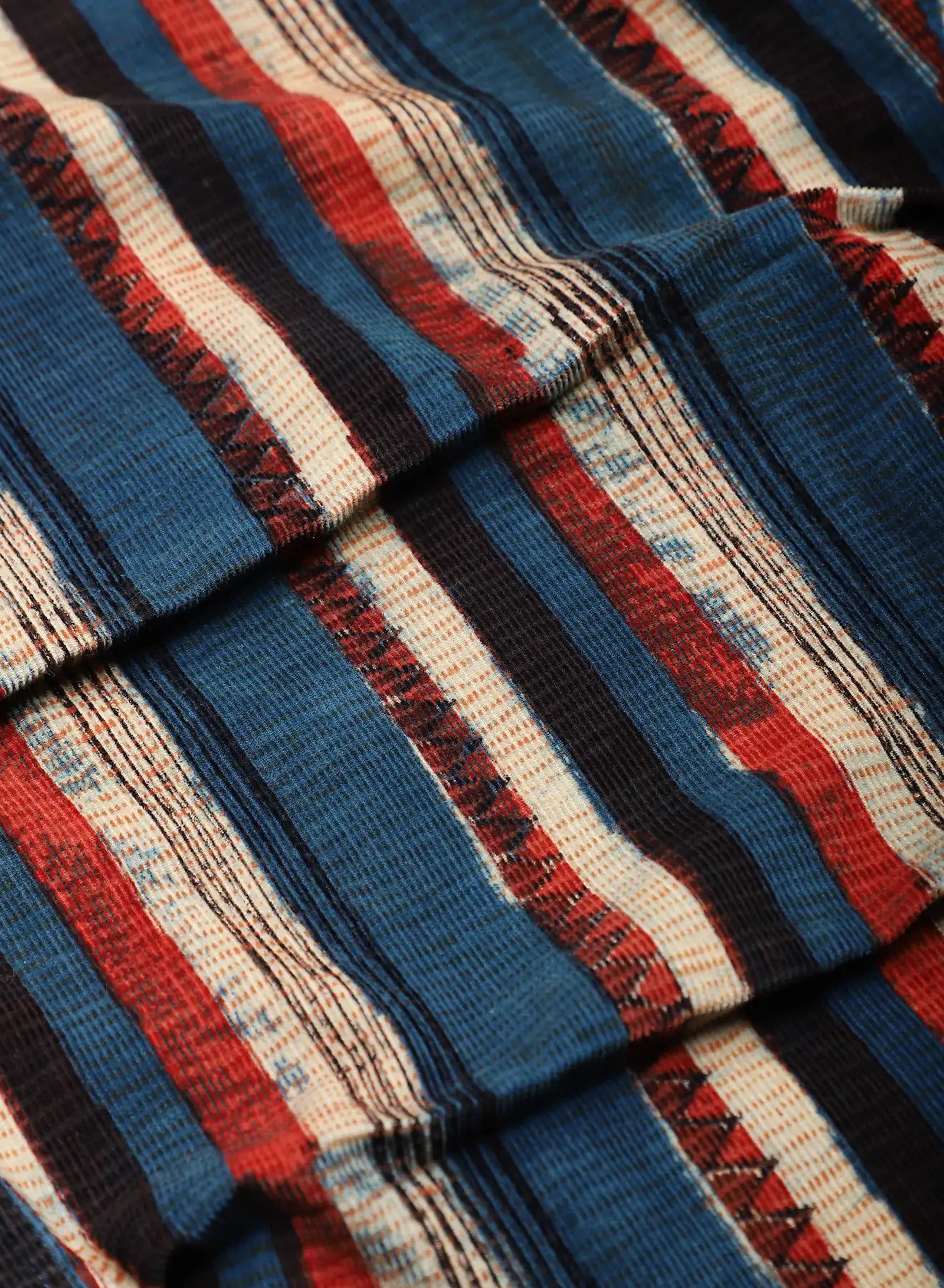We print these fabrics with hand-carved wooden blocks, each block carrying a fragment of the larger pattern. Every colour is pressed in a separate pass, aligned by eye and hand with practiced precision. We work with master printers in Rajasthan, including Anokhi, and often turn to natural dyes for their depth and warmth. As the cloth is printed, the colours settle into the fibres themselves, so the pattern becomes part of the fabric’s character, resting as naturally as the weave around it.