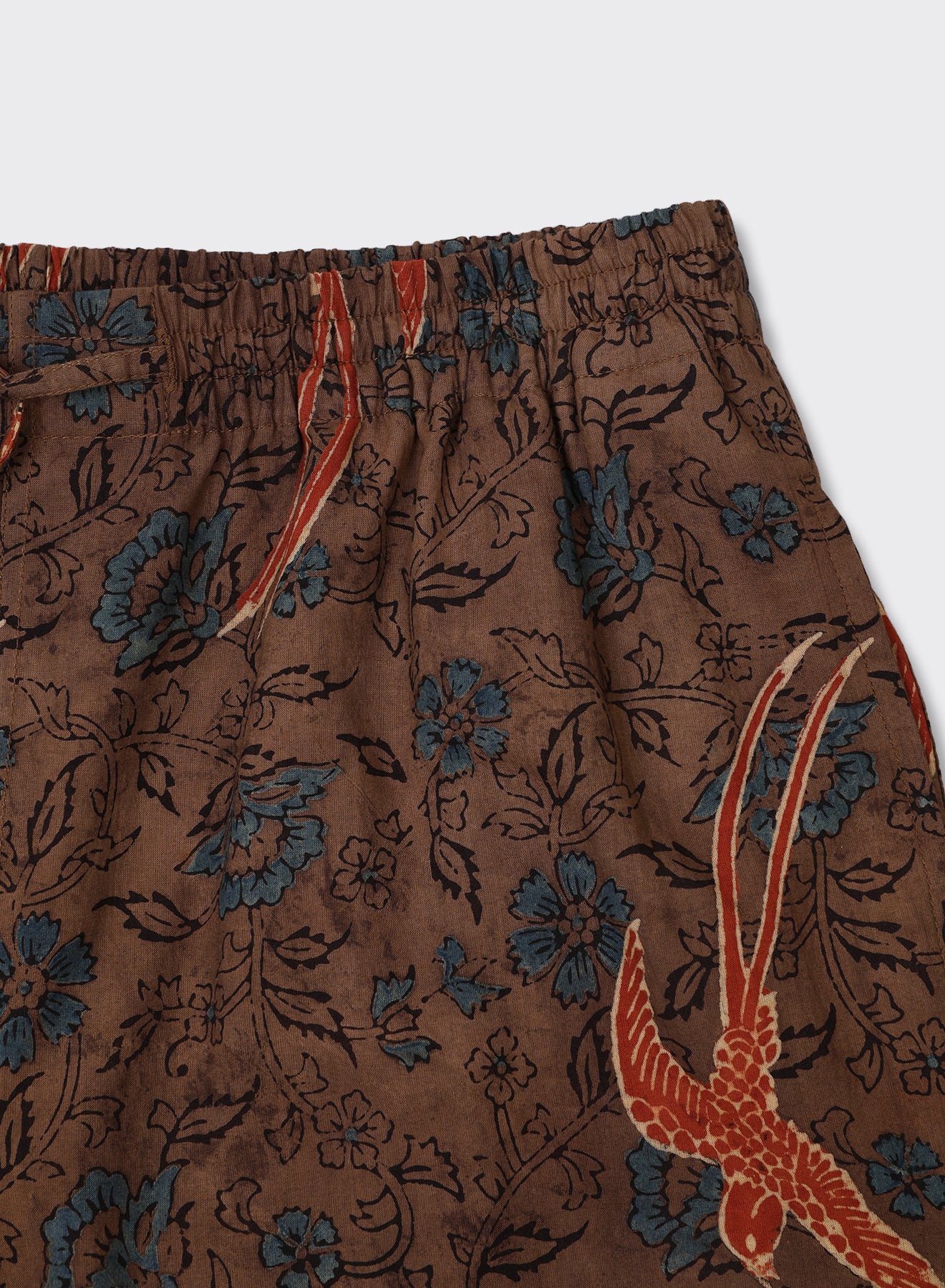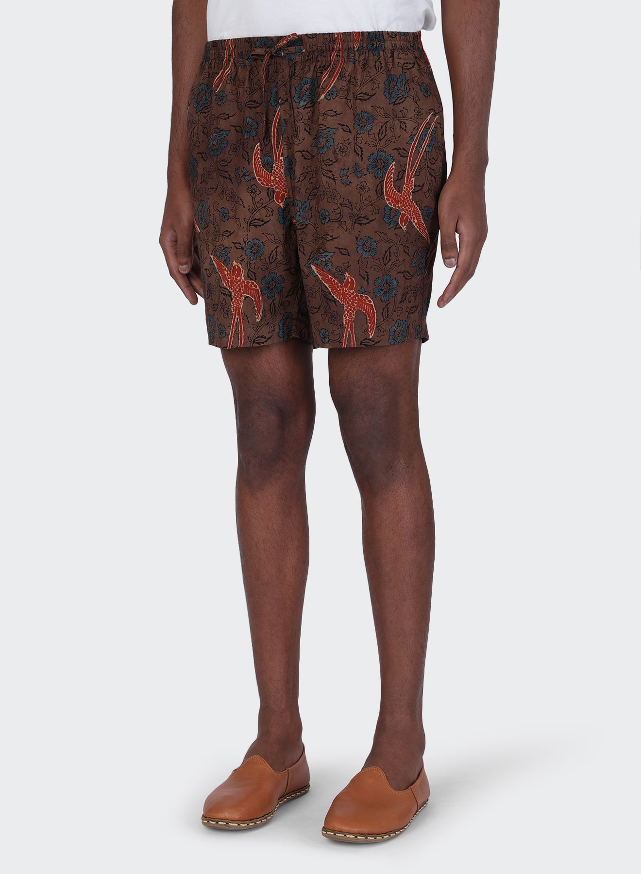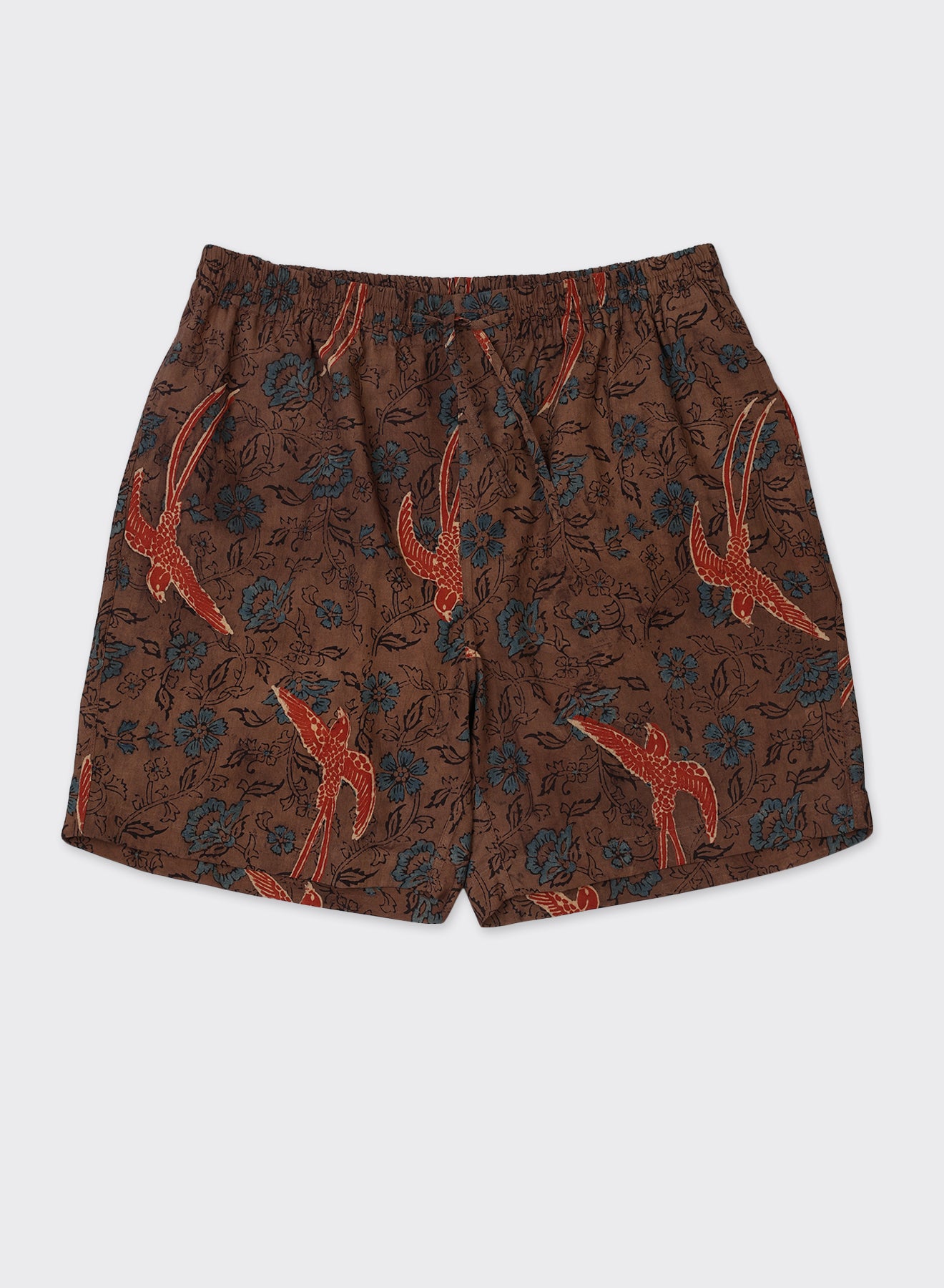 ALGHERO sits easy at the waist, its line shaped by an elastic hold that gathers the fabric into a soft, controlled volume. The shorts fall away from the body with a lightness that keeps the leg open and unconfined. Inside, a fine net layer gives structure, supporting the shape without changing its natural character.